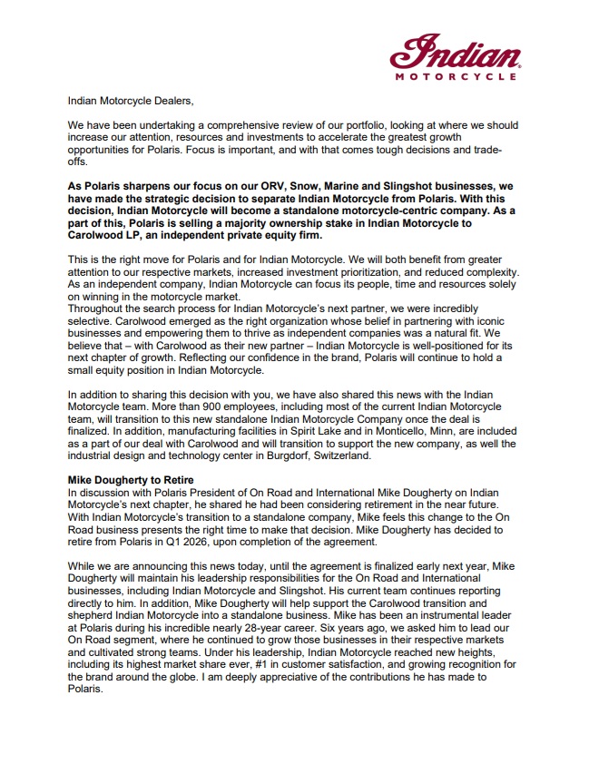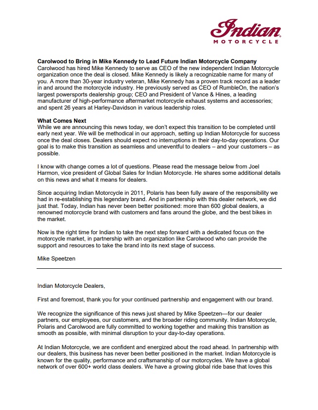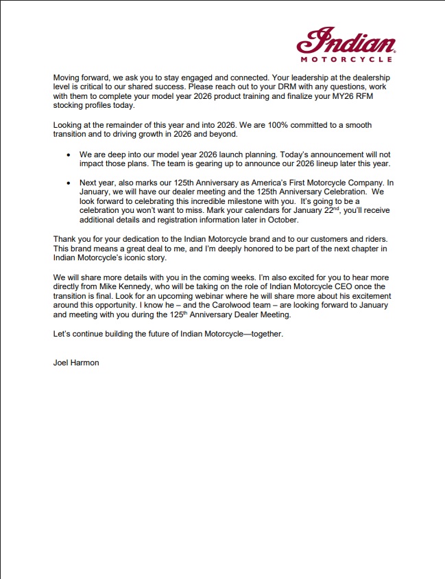 Important News from Indian Motorcycle