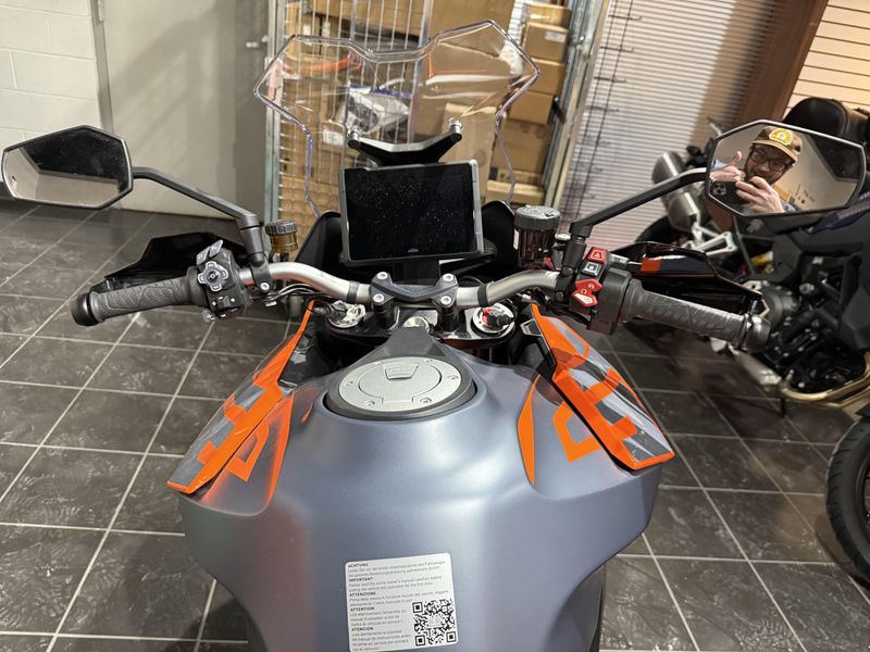 An all-new full color 7" TFT dashboard lifted from the KTM 1290 SUPER ADVENTURE S takes the KTM 1290 SUPER DUKE GT's dash into a different realm. Featuring a slew of features, from Turn-by-turn Plus navigation to a dedicated PERFORMANCE MODE, the display layout finds the ultimate balance between information, performance, and style.