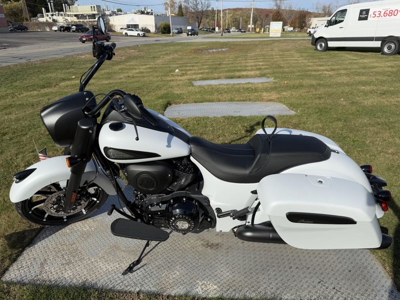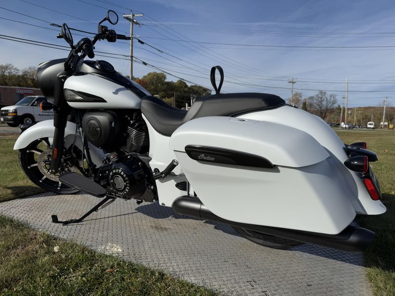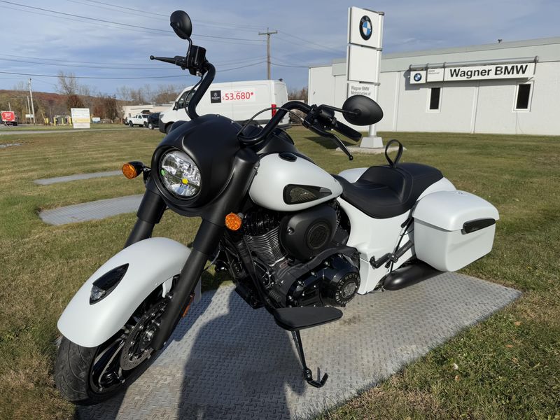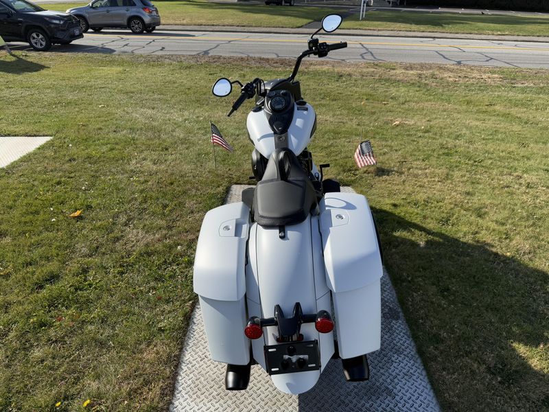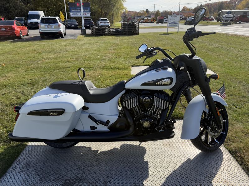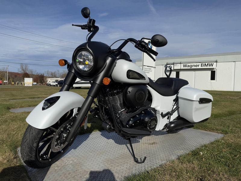 Inspired by the look of custom bikes, the Indian Springfield Dark Horse keeps your fists in the wind and eyes on you.