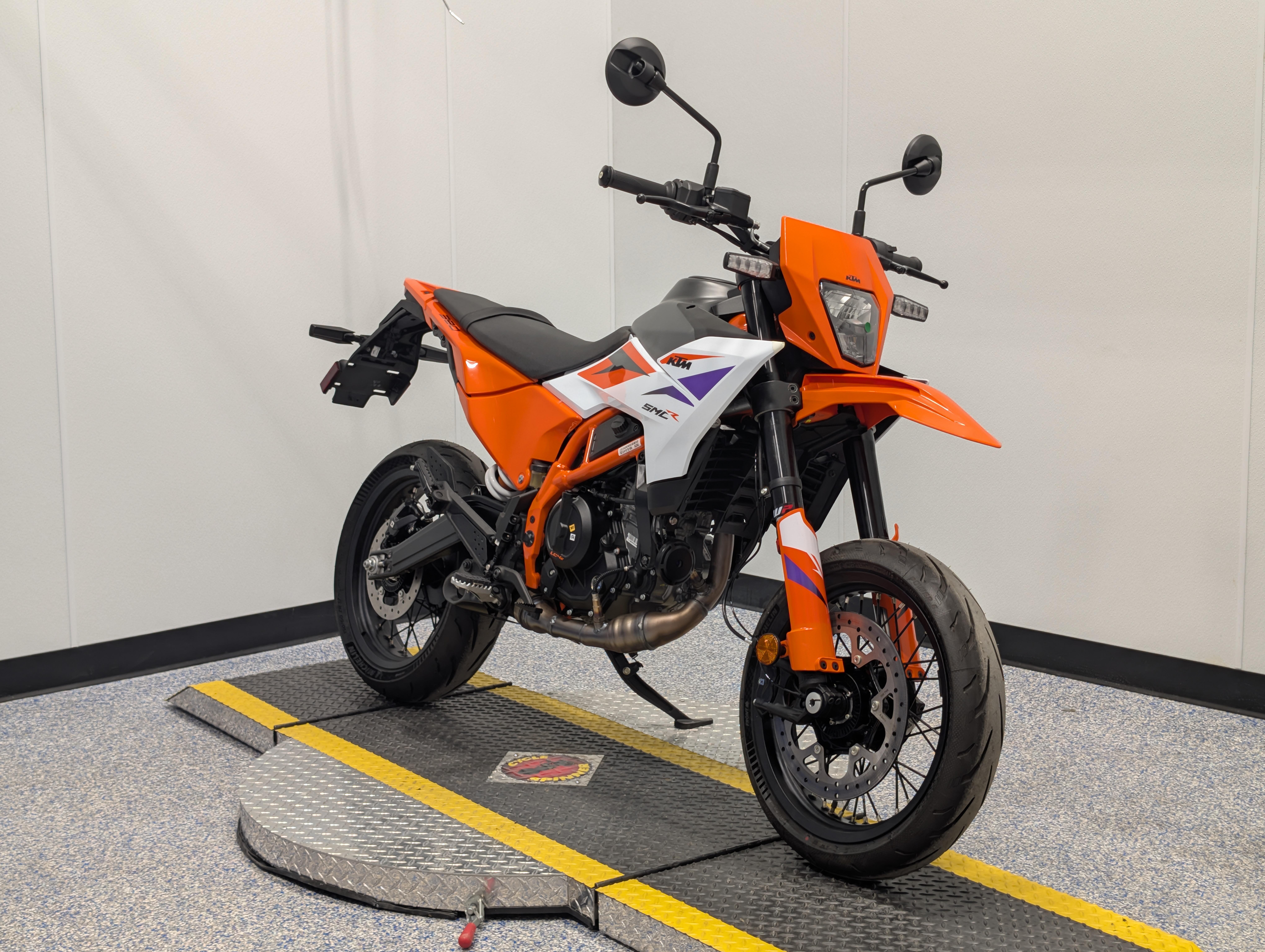 The KTM 390 SMC R (2025/2026 model) is a lightweight, aggressive supermoto built for fun on asphalt and dirt, featuring a 399cc single-cylinder engine (44hp), fully adjustable WP Apex suspension, and street-focused Michelin tires on 17-inch spoked wheels, with modern electronics like riding modes, switchable traction control, and a TFT dash, offering approachable performance for new riders or experienced enthusiasts wanting a nimble, stunt-capable street machine.