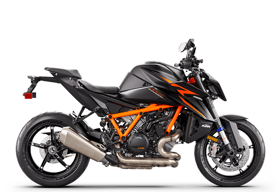 • Colorways & Graphics: Looking back while blasting its way into the future, the 2025 KTM 1390 SUPER DUKE R EVO wears its colors as a homage to THE BEASTS that came before it. Drawing from over a 30-year-old bloodline, the iconic Orange colorway is inspired by its ancestral KTM 990 SUPER DUKE colors from as far back as 2005.